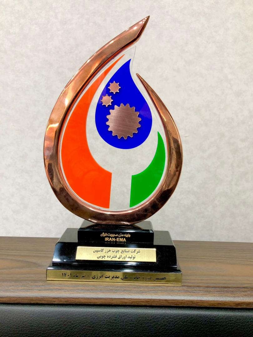 هفتمین دوره جایزه ملی مدیریت انرژی، روز چهارشنبه یکم تیرماه در سالن همایش های مدیریت صنعتی شهر تهران برگزار شد که شرکت صنایع چوب خزر کاسپین به عنوان یکی از پیشروترین شرکت های صنعتی کشور در حوزه ی مدیریت، حفظ و استفاده ی بهینه از انرژی، با اهداء تندیس برنزی دو ستاره و لوح مدیر برتر انرژی، مورد قدردانی و تجلیل قرار گرفت.