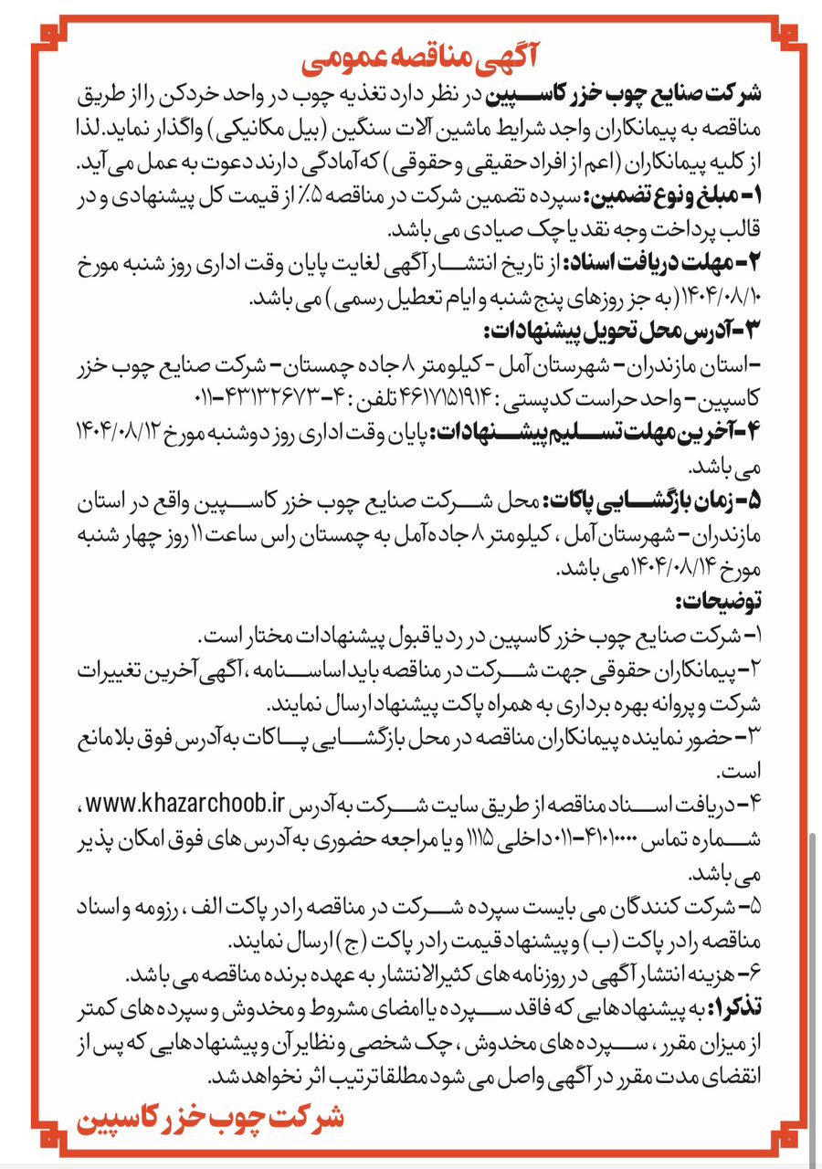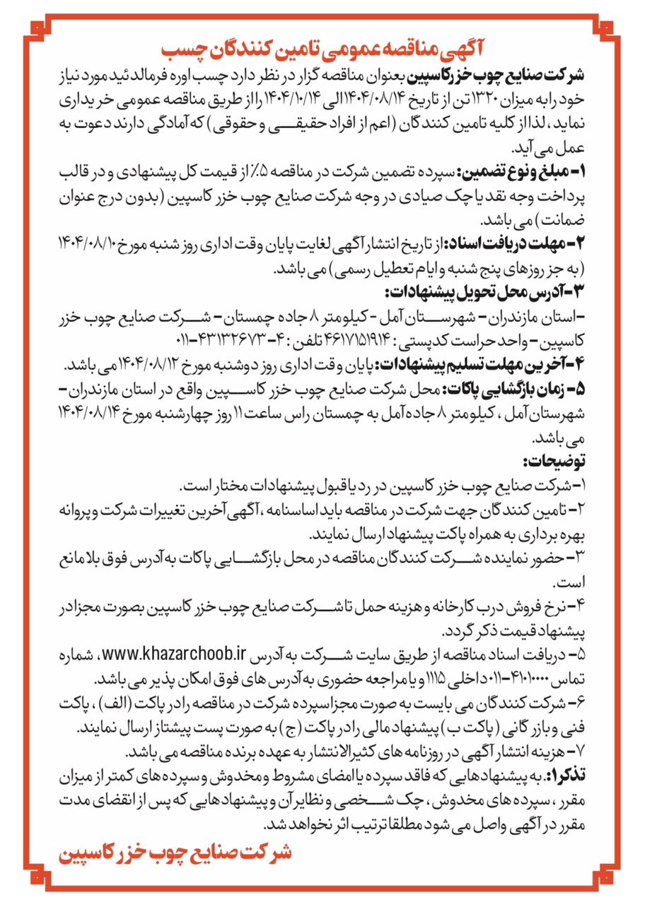 جهت دانلود اسناد مناقصه تامین کنندگان چسب کلیک کنید. جهت دانلود اسناد مناقصه تامین کنندگان ماشین آلات سنگین کلیک کنید.