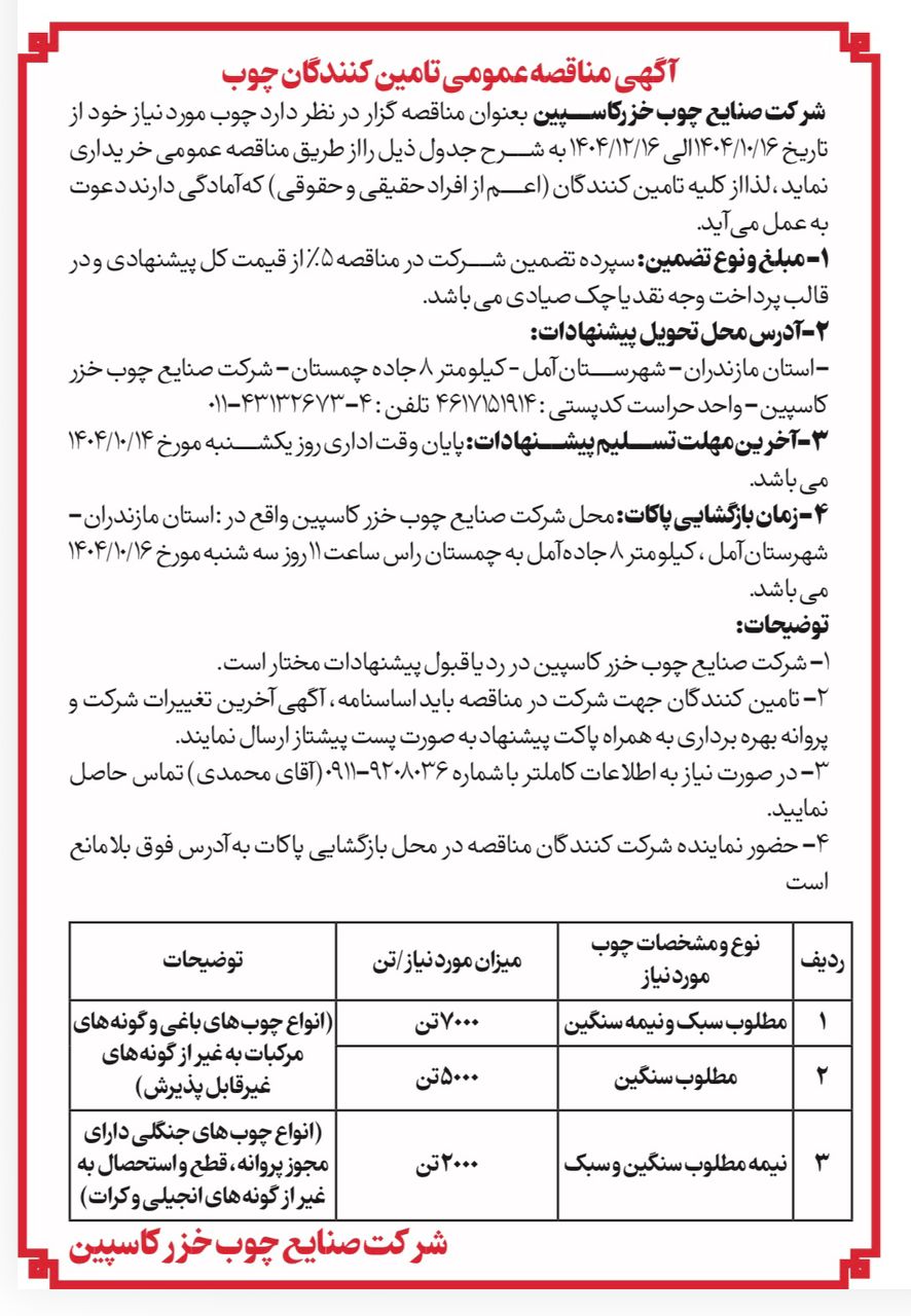 آگهی مناقصه عمومی تامین کنندگان چسب و چوب